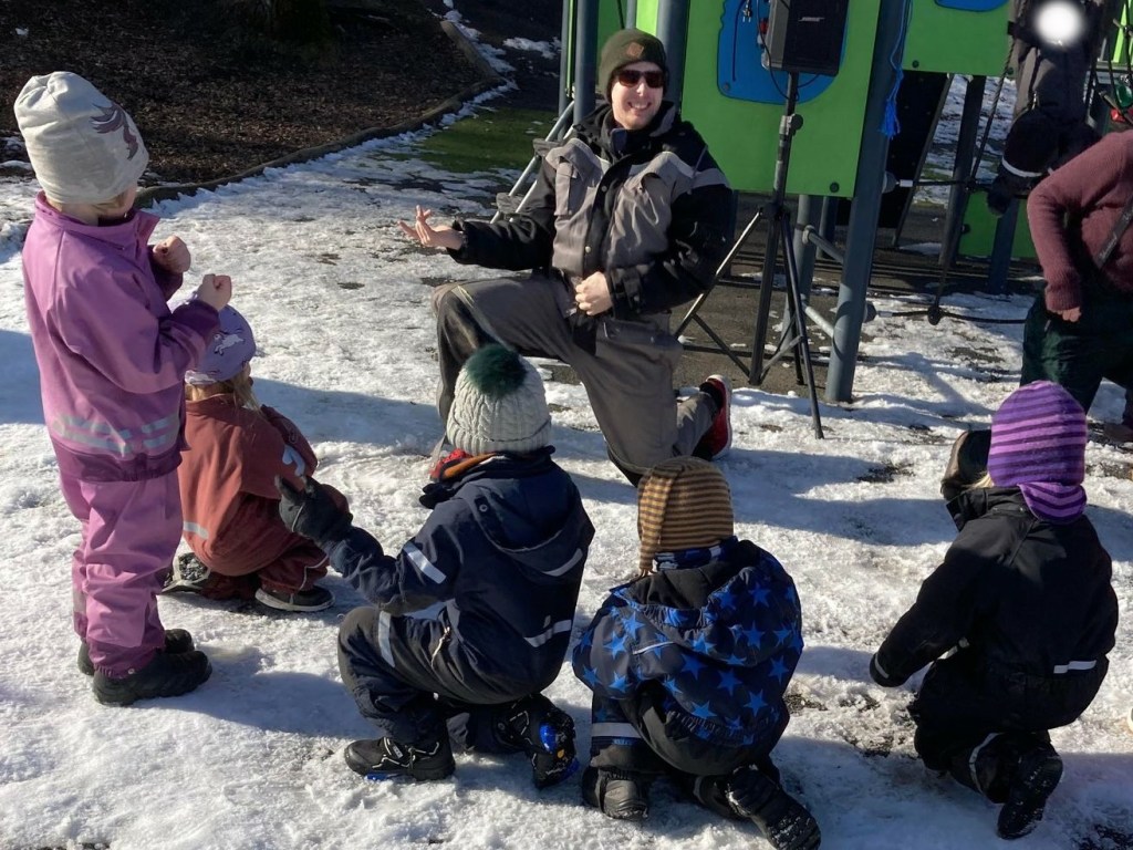 I norske barnehager er vi ute året rundt. I sol, regn, snø eller storm så er vi ute. Vi ønsker at barna skal få positive erfaringer med uteliv i barnehagen og opparbeide seg en god innstilling til friluftsliv. Men det hender at barn kan bli umotiverte og lei på tur eller ute i barnehagen, de finner seg en liten plass og setter seg ned passive og blir kalde og kjeder seg. Da er det supert å kunne finne frem høyttaleren og Iphone og ta seg en diskoøkt, få varmen i kroppen og ha det gøy sammen. Vi får opp aktivitetsnivået og vi kjenner at gjennom bevegelse har kroppen og hodet det bedre (Darre, 2013, s. 117)